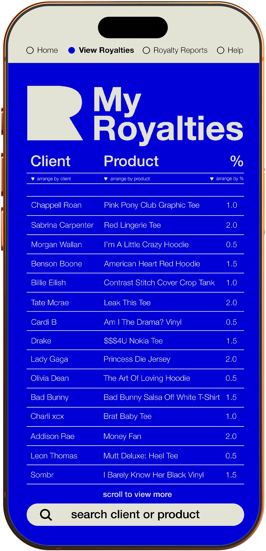 A platform to collect, track and get paid royalties for the products you concept and design.